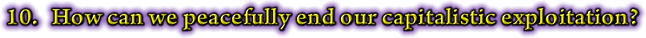We the people of the world already have the power to peacefully end our predatory evolution. No one can stop the will and determination of a unified global population or the natural evolutionary development of a species. Because our capitalistic exploitation is a manifestation of our predatory evolution it too will become extinct like a social dinosaur. Capitalism will eventually become known as the dark ages of our social and intellectual evolutionary development. At least that’s how I see it.