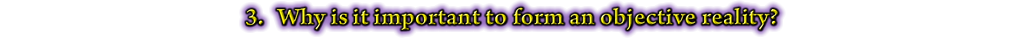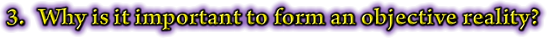 An objective reality is the opposite of a subjective reality. An individual living with an objective reality will want factual information to form opinions, make decisions and take actions. Relying on what others tell us we must do or our emotional feeling about the subject will not be as good as learning the facts and deciding for our selves what is true or false. Just as an induced subjective reality can be used to deceive someone, forming an objective reality is used to break this control and make informed decisions.