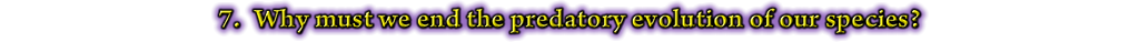 The predatory evolution of our species is responsible for the greatest preventable suffering and death since the beginning of our existence. It is imperative that we use our intelligence and objective reasoning to end this phase of our evolutionary development.