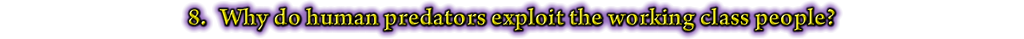Capitalism represents the ultimate achievement of our predatory evolution. Capitalism has become an advanced social economic system that allows the most powerful few to legitimize the systematic exploitation of the many working class people all over the world.